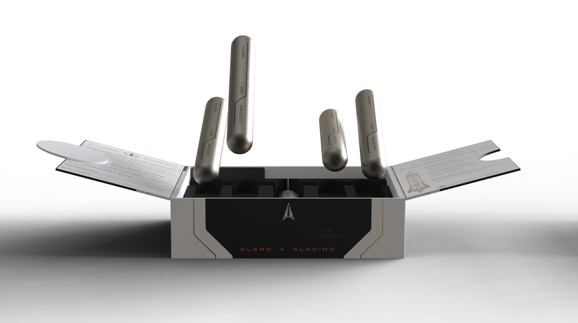 Each box includes an aluminum crew pass with a QR code that gives you priority access to Klaro’s future mission launches.