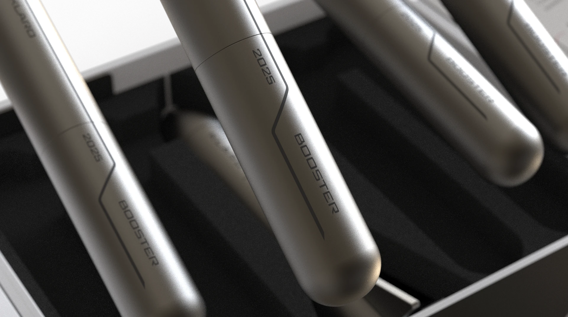 The four Booster Tubes function as auxiliary flight hardware, designed to protect and transport individual cigars. Machined from aluminum and marked with Mission detailing, they commemorate the project’s 2025 origin ahead of its 2026 launch.